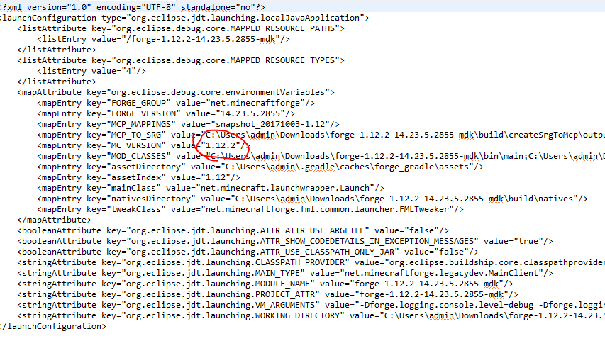 그리고 runClient.launch 파일을 수정해줍니다. 동그라미 표시한 곳을 다음과 같이 수정했습니다.